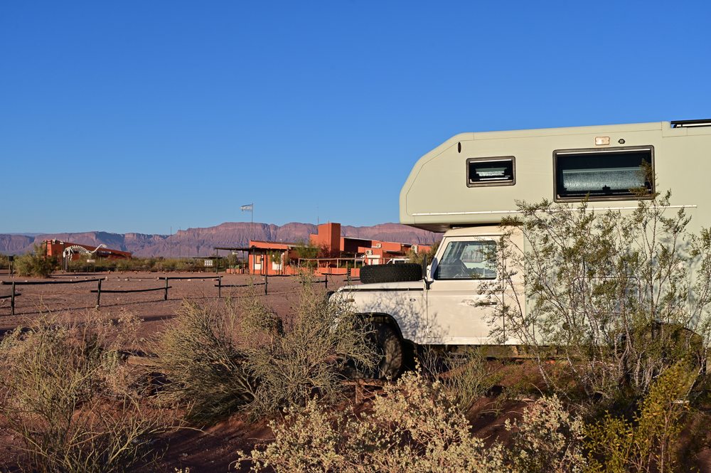 Es ist heiß, 36°C bei sehr trockener Luft aber zum aushalten. Wir buchen uns auf dem kleinen Campingplatz ein und erkundigen uns nach der Startzeit für die morgige Besichtigungstour, denn alleine darf man in den Park nicht rein fahren.