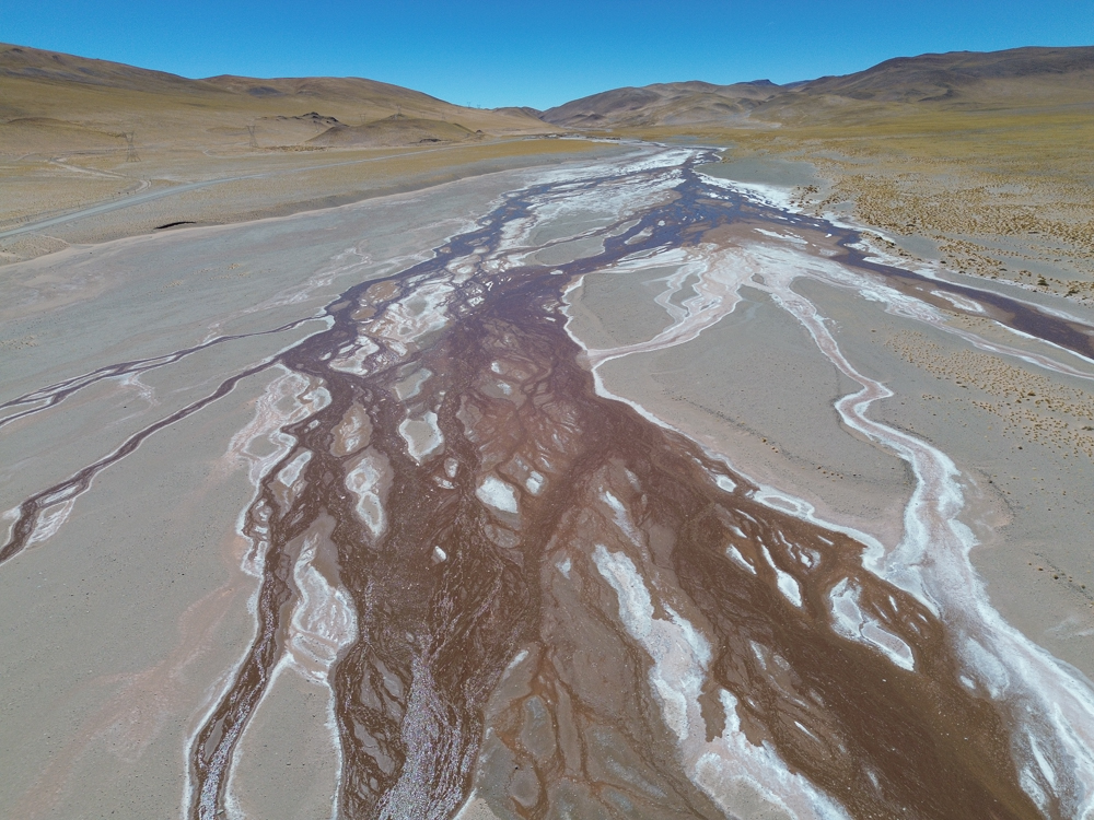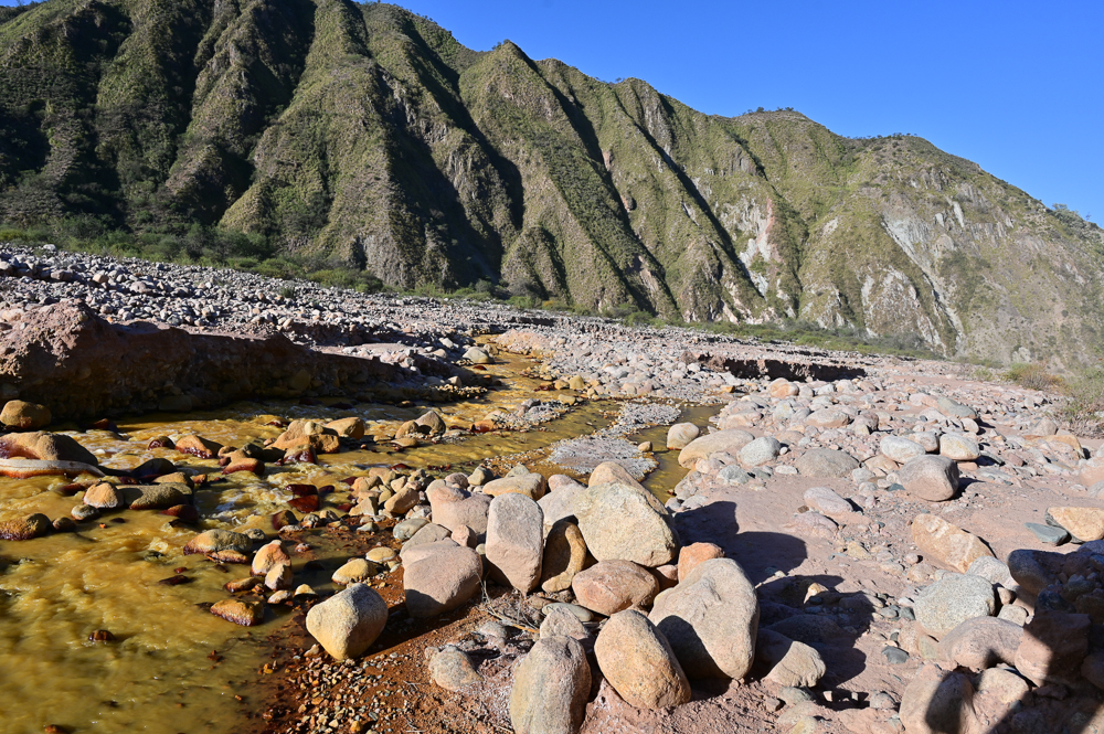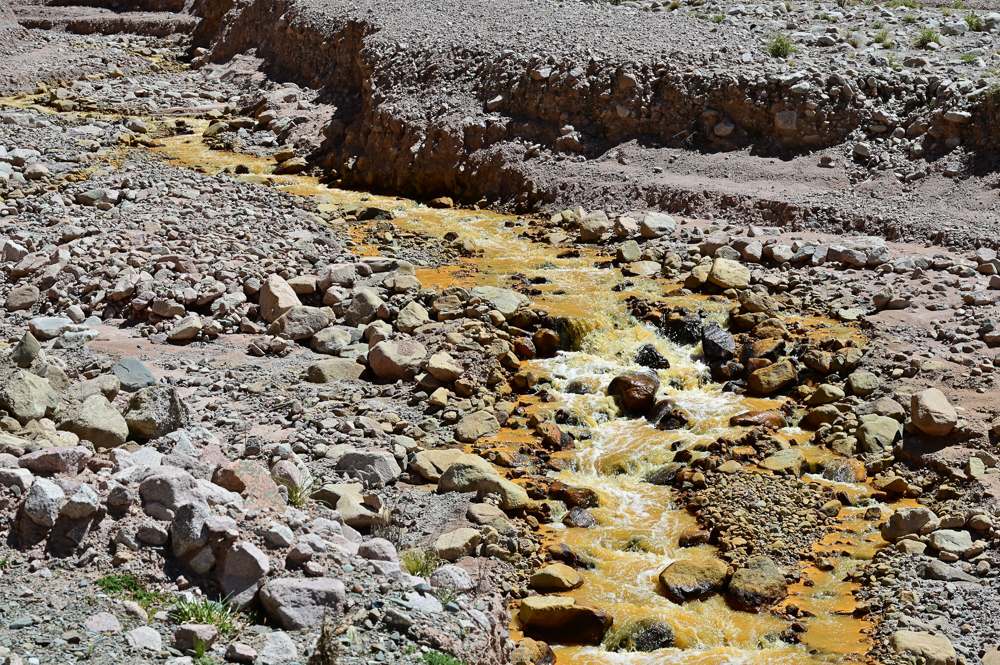 Im Tal windet sich der gelbe Fluss und führt Wasser von der Mine zu Tal.