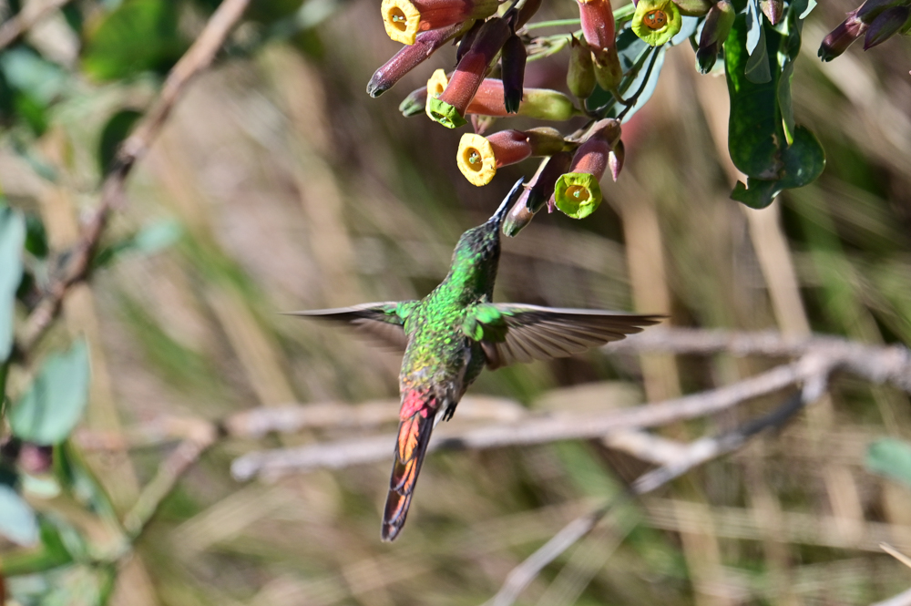 An Station 2 treffen wir Ursula und Fritz aus der Schweiz. Wir beschließen 20km hinter ins Tal zu fahren und dort einen ruhigen und vor allem kühlen Platz zu suchen. Wir bleiben dort 2 Nächte und machen auch eine kleine Wanderung. Morgens flattern drei verschieden Kolibriarten im Busch vor unserem Fenster.