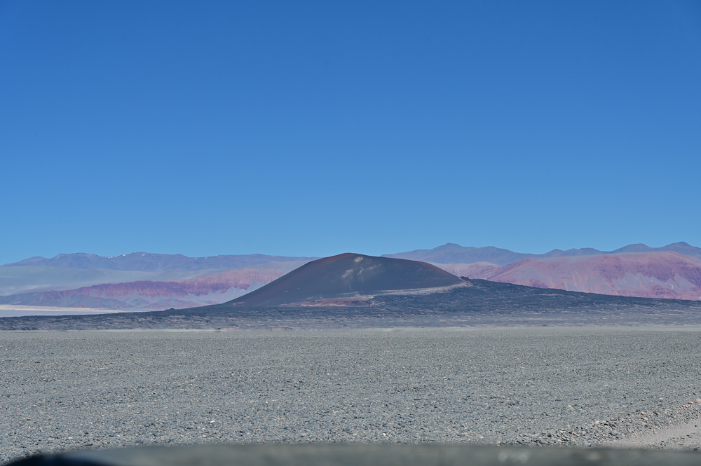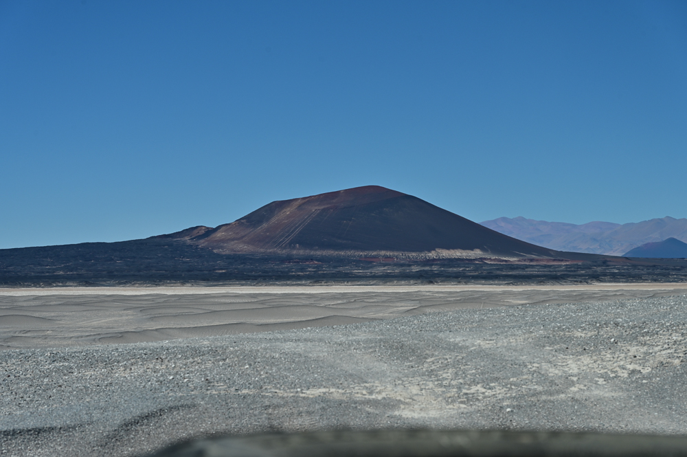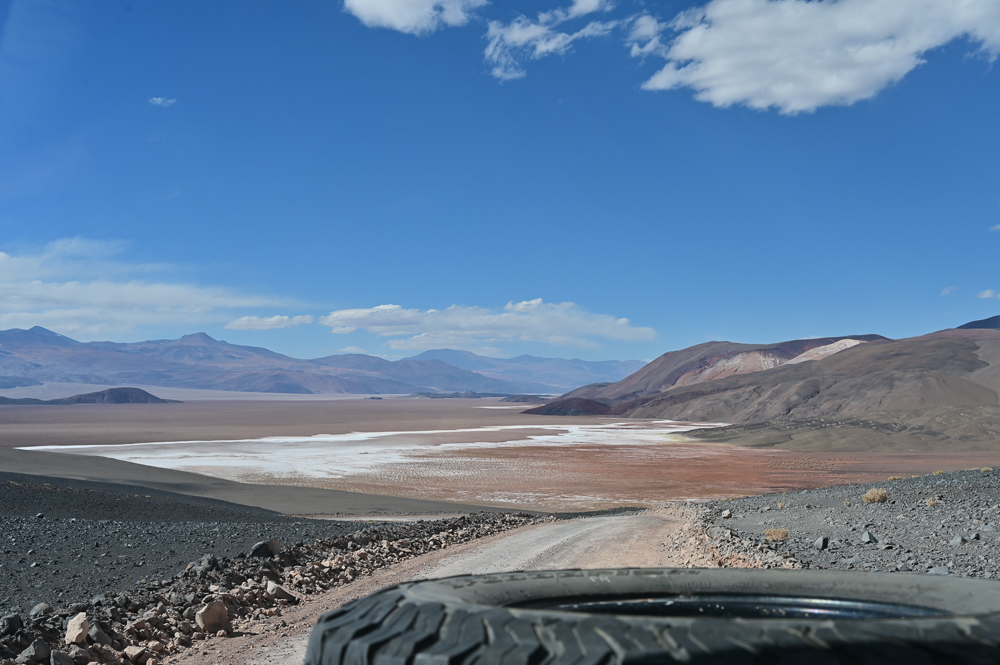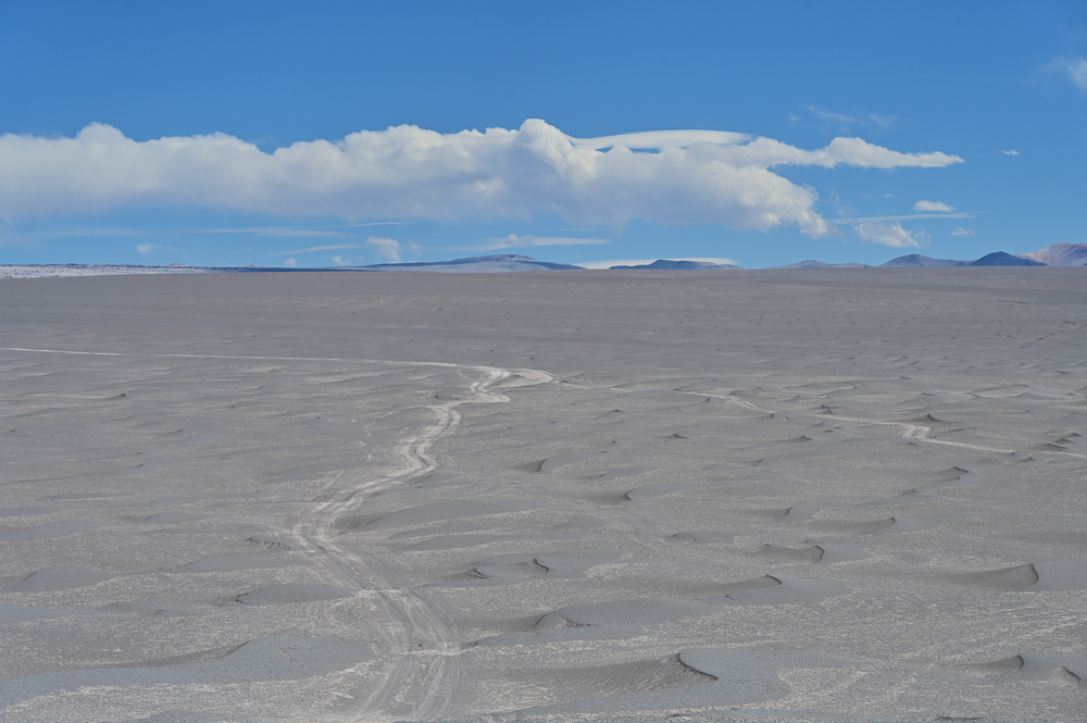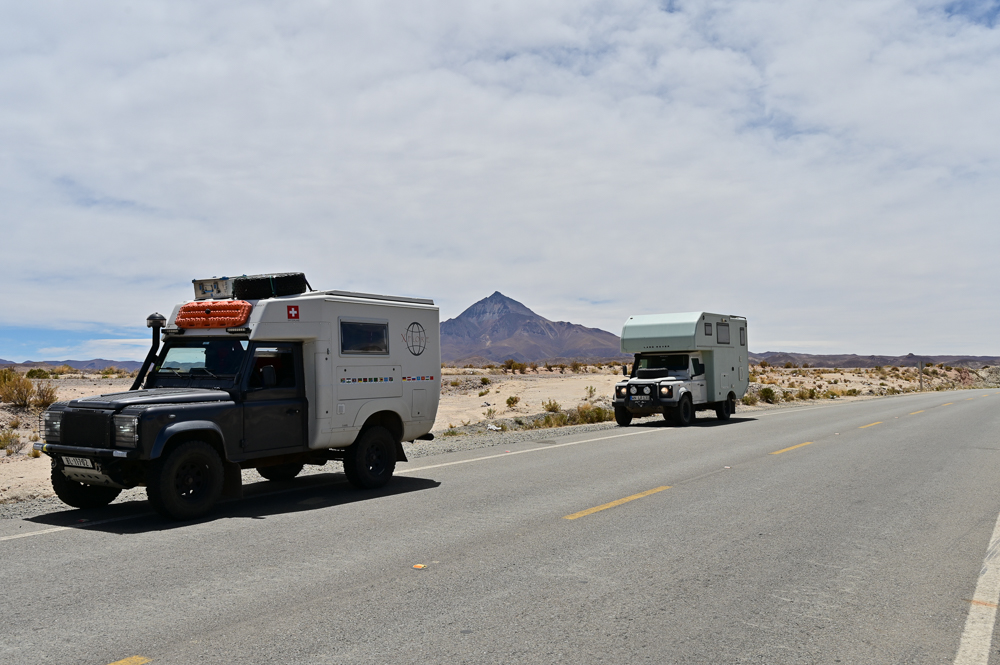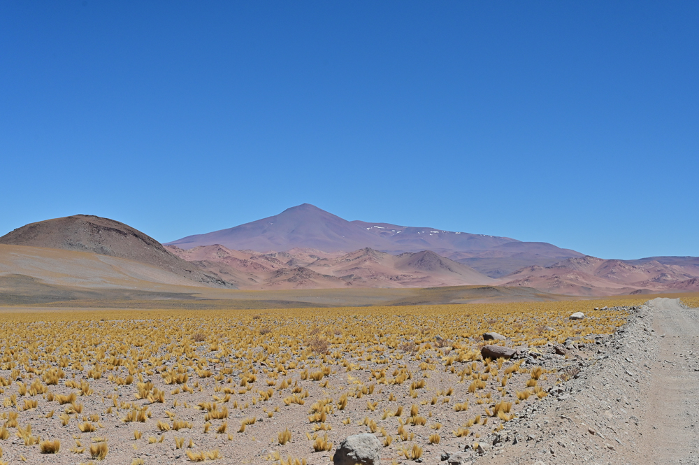 Richtung El Penon wird die Luft, aber auch der Straßenbelag immer dünner. In El Penon geht es links ab, Piste rings um den Vulkan Carachi Pampa, ein wahnsinnig schöne aber auch einsame Landschaft durch die uns der Landi trägt.
