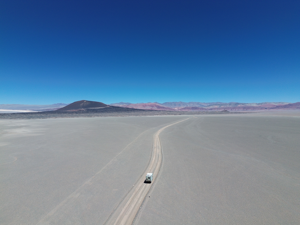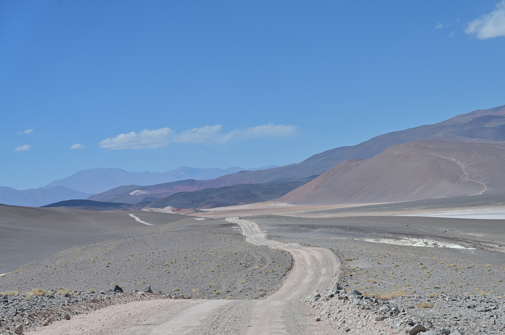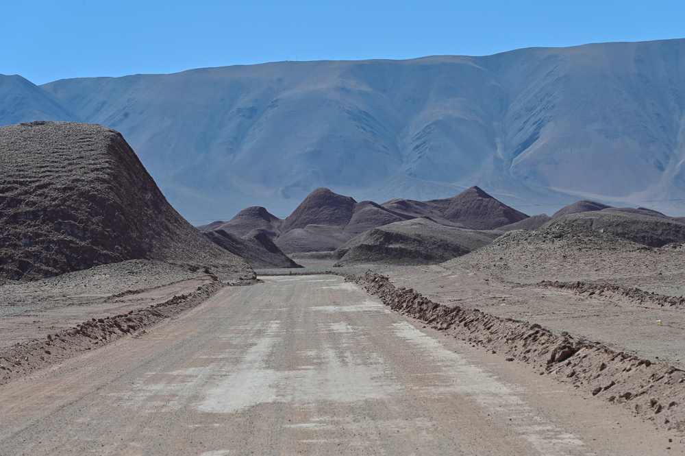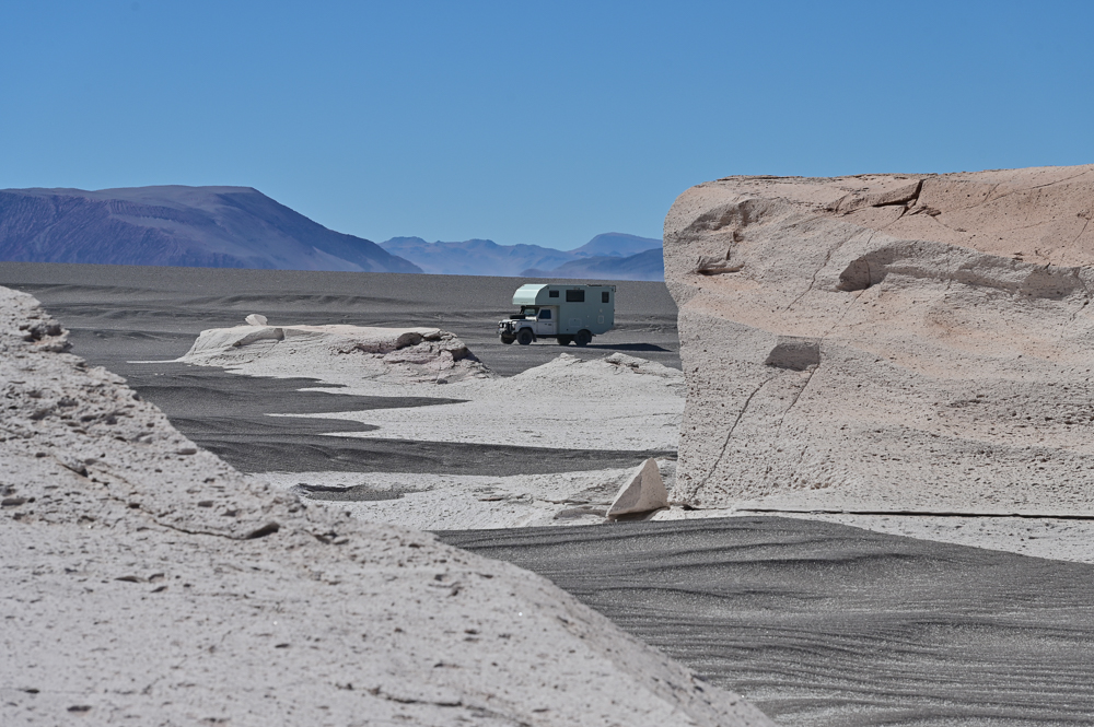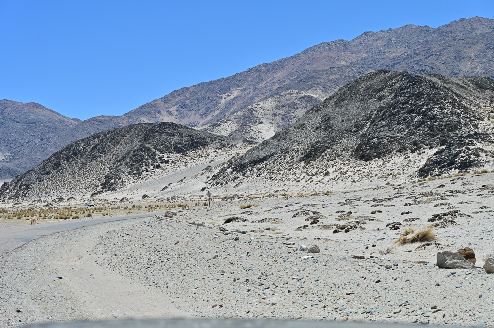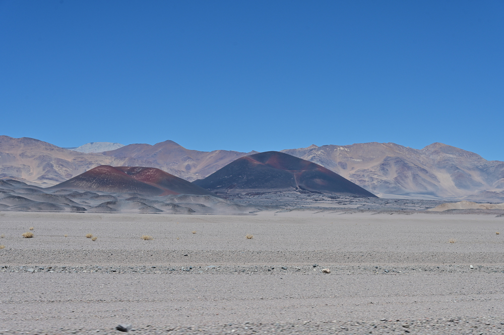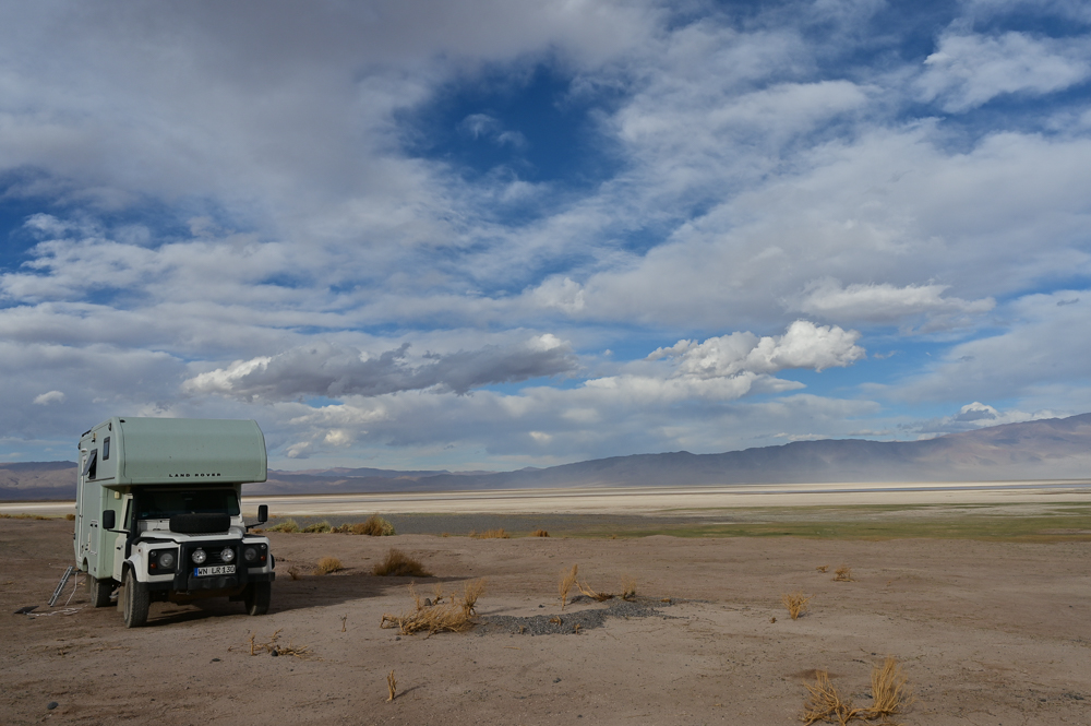 Richtung El Penon wird die Luft, aber auch der Straßenbelag immer dünner. In El Penon geht es links ab, Piste rings um den Vulkan Carachi Pampa, ein wahnsinnig schöne aber auch einsame Landschaft durch die uns der Landi trägt.