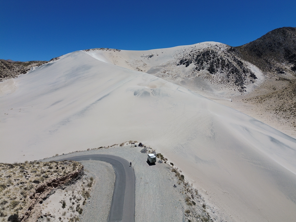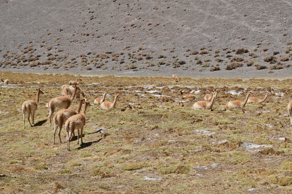 Am nächsten Tag fahre wir bis zur Laguna Blanca auf 3200m wir wollen uns langsam an die Höhe gewönnen. Unterwegs kommen wir an einer kleine Sanddüne vorbei. Immer wieder sehen wir  Vincunas, die wilde Varianta der Lamas.