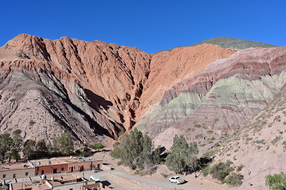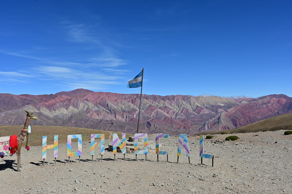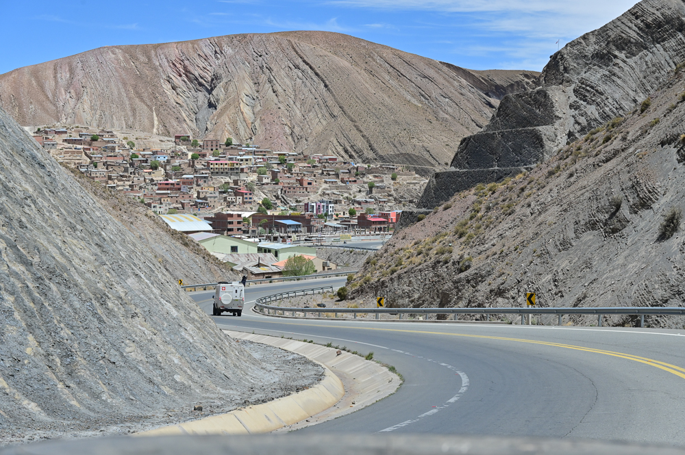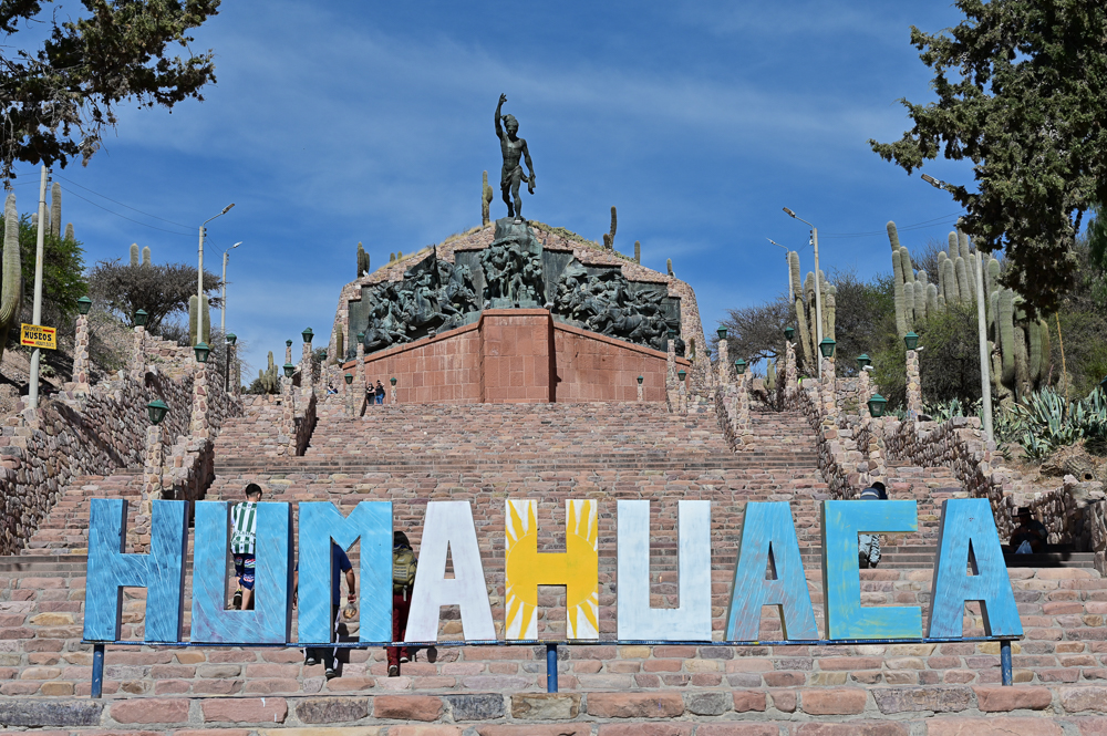 Dann machen wir los, zusammen mit den Anderen fahren wir nach Humahuaca, also wir treffen uns dort. Die Fahrt auf guter Teerstraße führt durch tolle Landschaft. Im Ort steht auch das Ehrenmal für die indigenen Freiheitskämpfer.