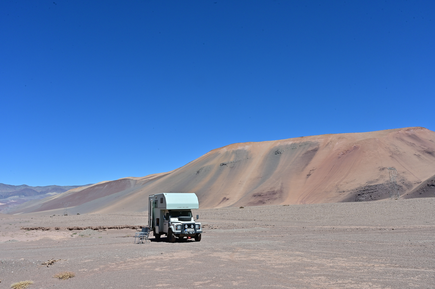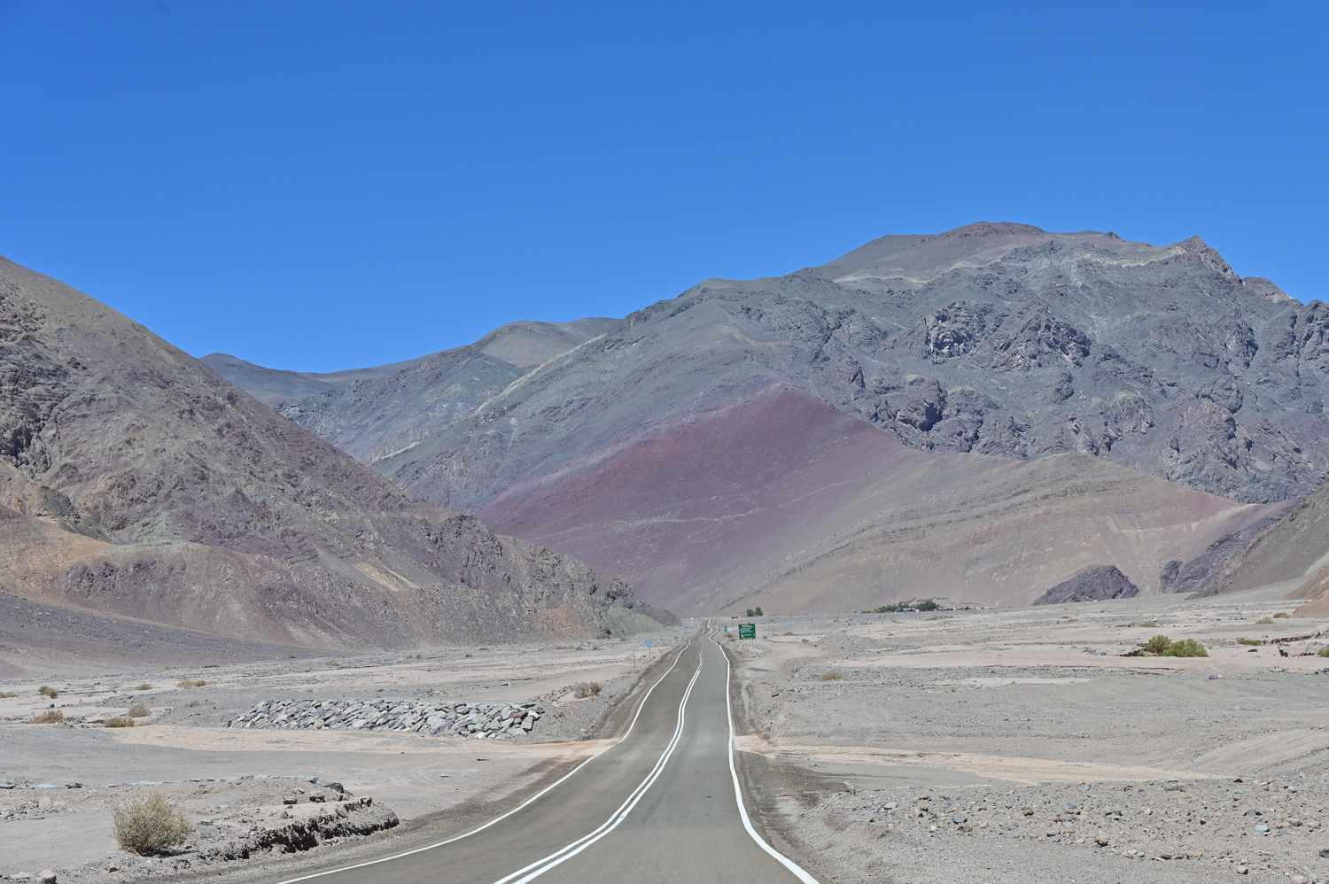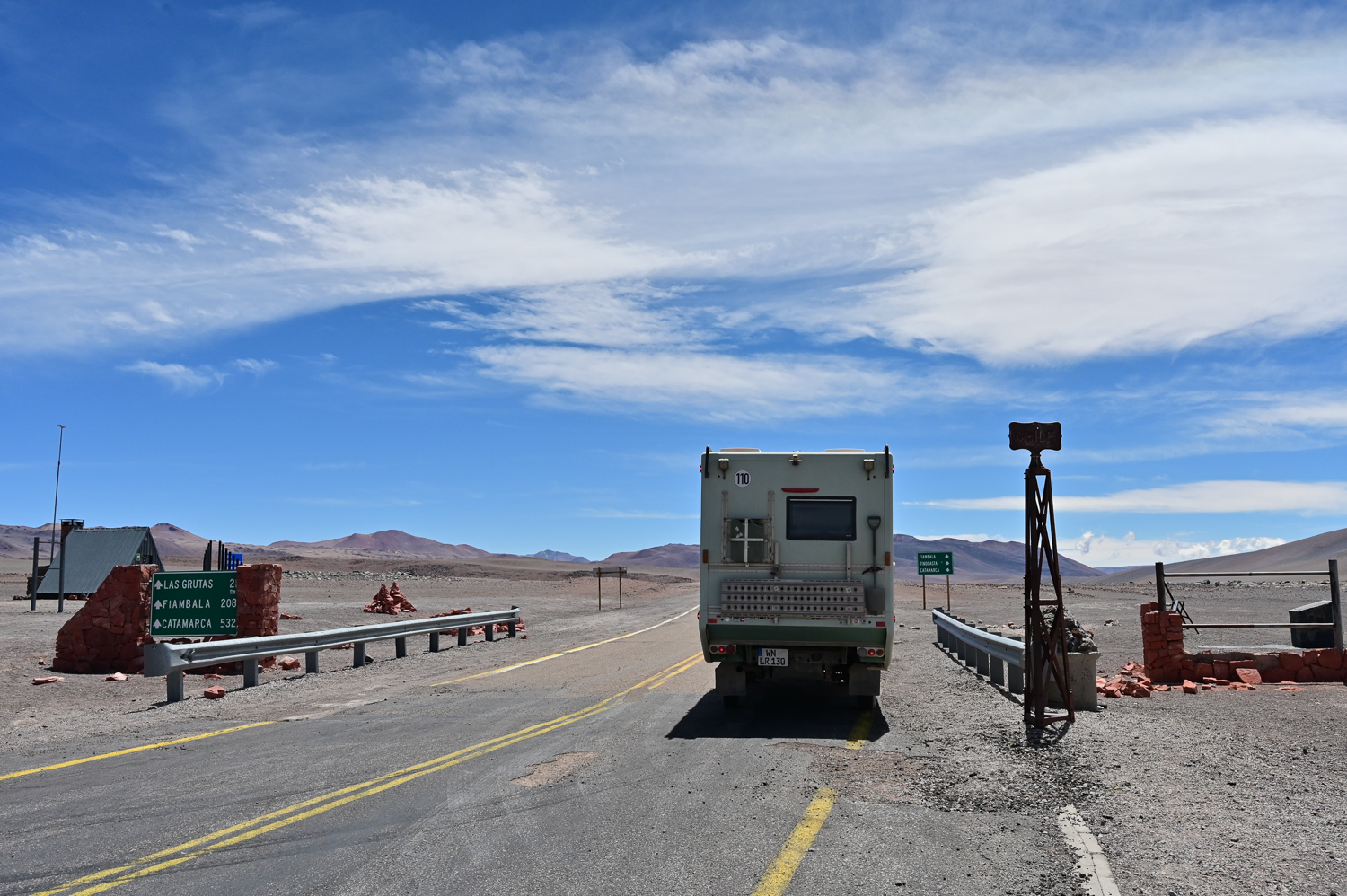 Von Copiapo bis hinüber nach Fiambala Argentinien liegt kein Ort, keine Tankstelle, einfach Nichts und es sind 480 km bis dort. Von Copiapo bis zur chilenischen Grenzstation sind es 170 km, 100 km weiter ist dann der Pass erreicht, ca 30 km weiter die argentinische Grenzstation und dann geht es noch mal 180 km hinunter bis Fiambala. Eine gigantische Weite.