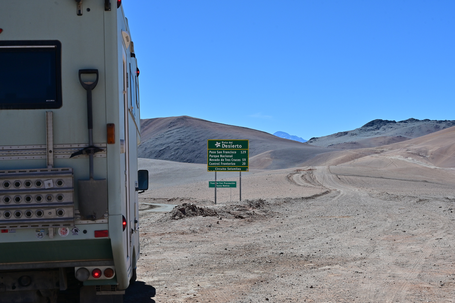Von Copiapo, wo wir nochmals tanken und unsere Vorräte auffüllen, fahren wir Richtung Argentinien. Die Strecke führt über den Paso San Francisco.