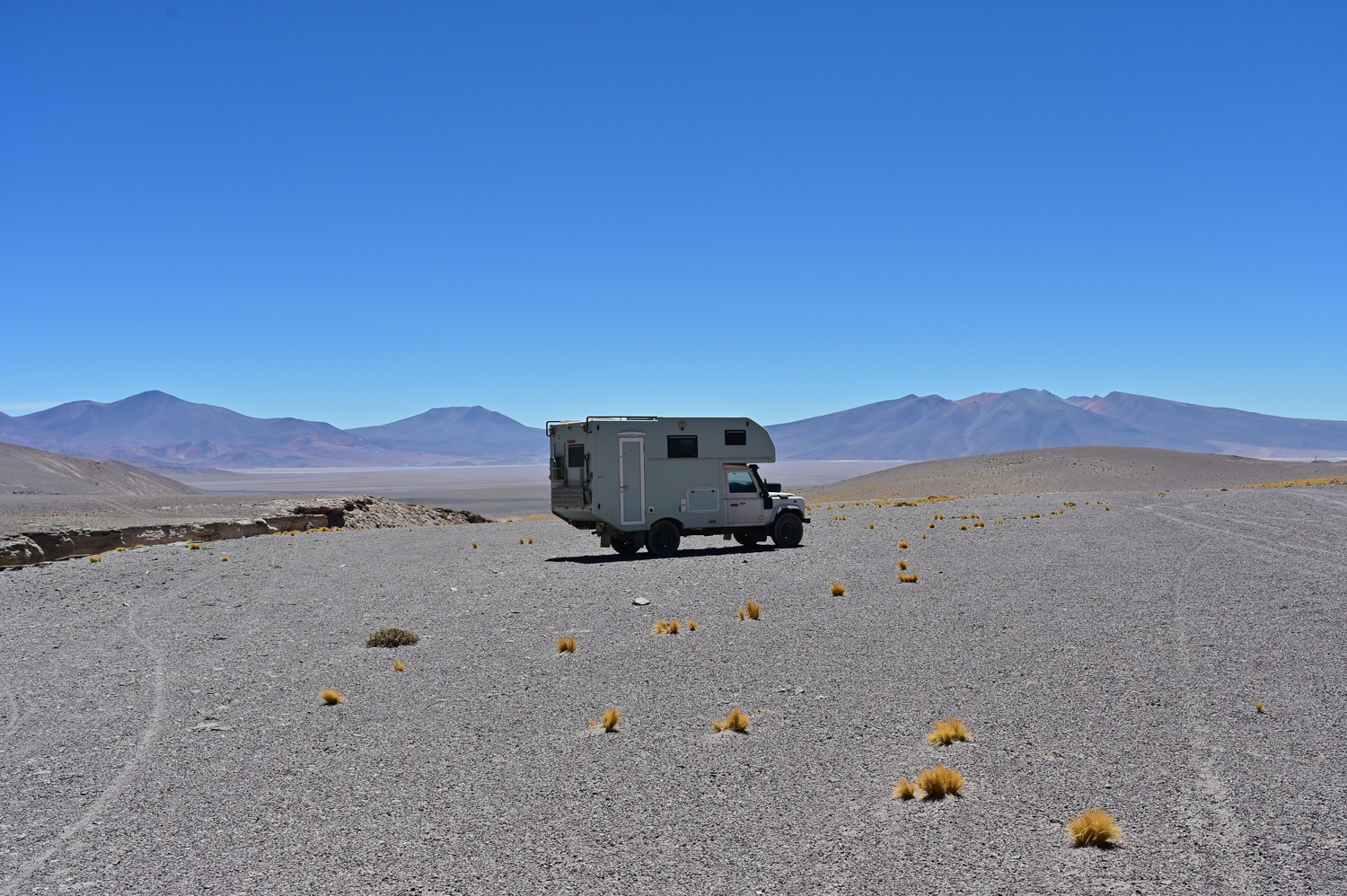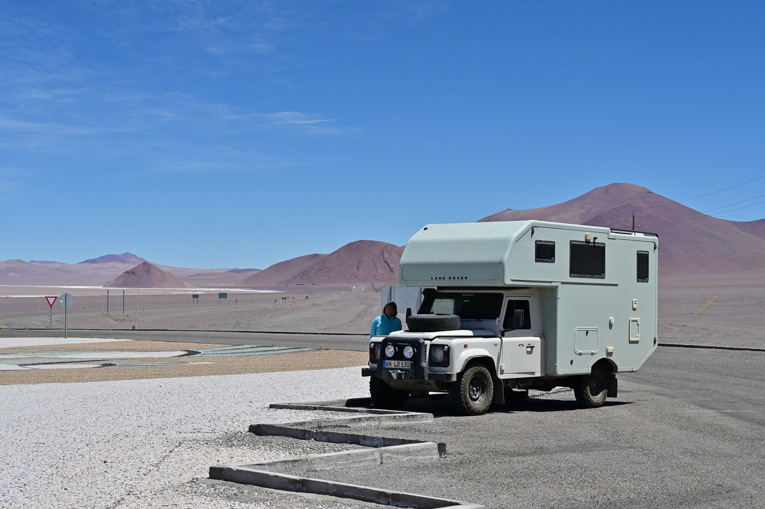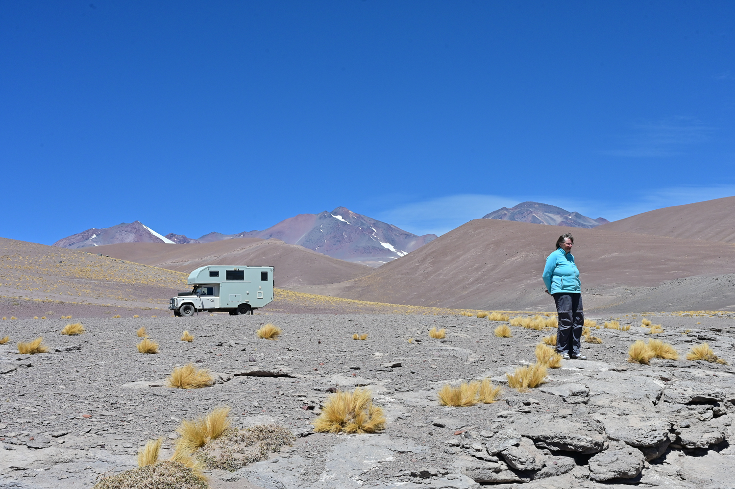 Weil wir vom Meer kommen müssen wir uns wegen der Höhe langsam akklimatisieren. Wir übernachten auf 2200 m, dann auf 3200 m und zuletzt auf 4200 m, immer einsam irgendwo rechts raus neben der Straße. In der letzten Nacht hat Sylvia Schwierigkeiten, Kopfweh und schlecht. Wir waren doch zu schnell in die Höhe gefahren.