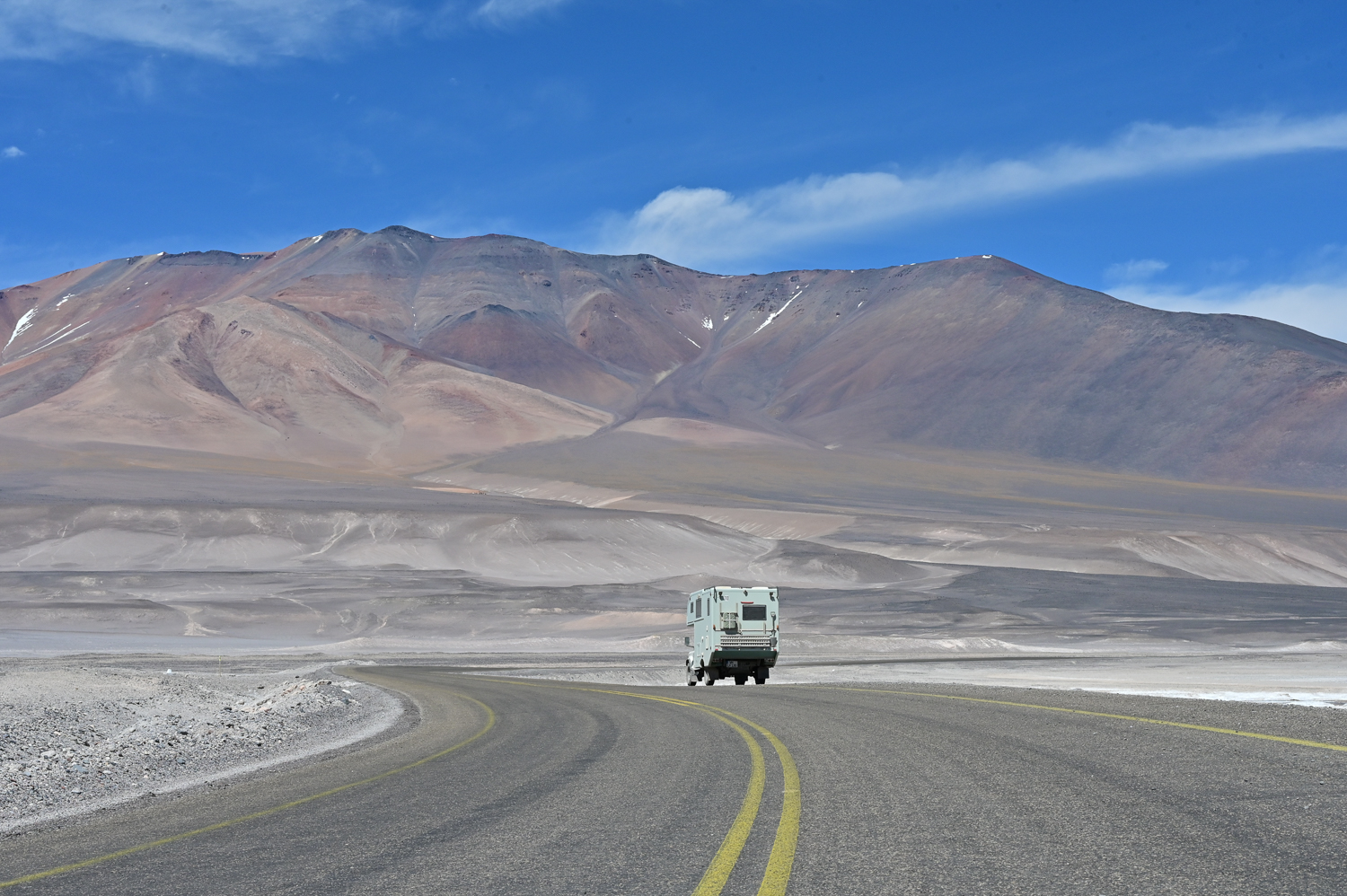 Zuerst fahren auf chilenischer Seite noch Minenlaster und Pickups, aber nach der letzten Mine begegnen uns auf den restlichen 350 km nur ca. 5 Autos.